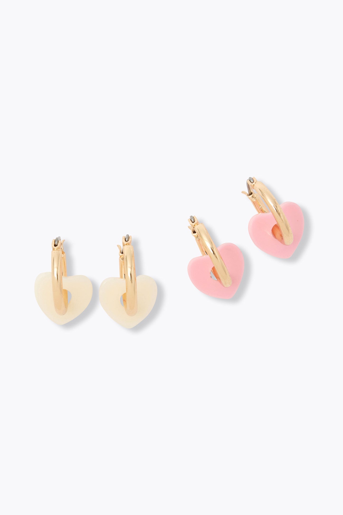 Quattro orecchini a forma di cuore, in due colori diversi, perfetti per soddisfare la tua passione per il cambiamento e il mix & match alla moda! Cerchi in zinco riciclato color oro e cuore in acrilico. Solo per lobi forati. Ottima idea regalo.