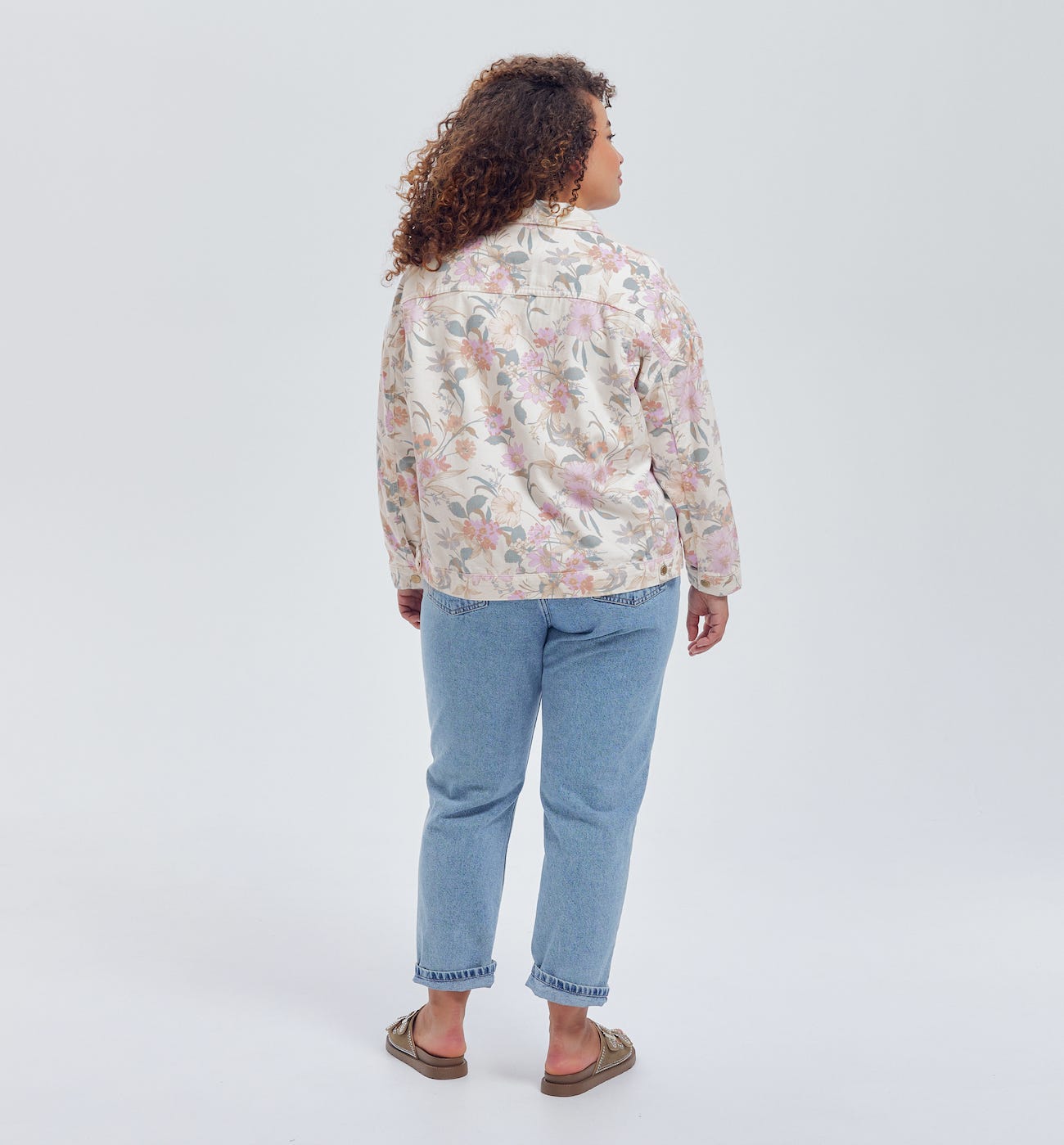 Giubbotto stile trucker a colori pastello e in versione oversize stampata da indossare, ad esempio, con i jeans o con una gonna lunga. Twill di cotone. Collo a camicia. Chiusura frontale con bottoni a chiodo. 4 tasche. Giromanica basso. Maniche lunghe e polsini con bottone. Fondo dritto con fascetta e bottone su ciascun lato.