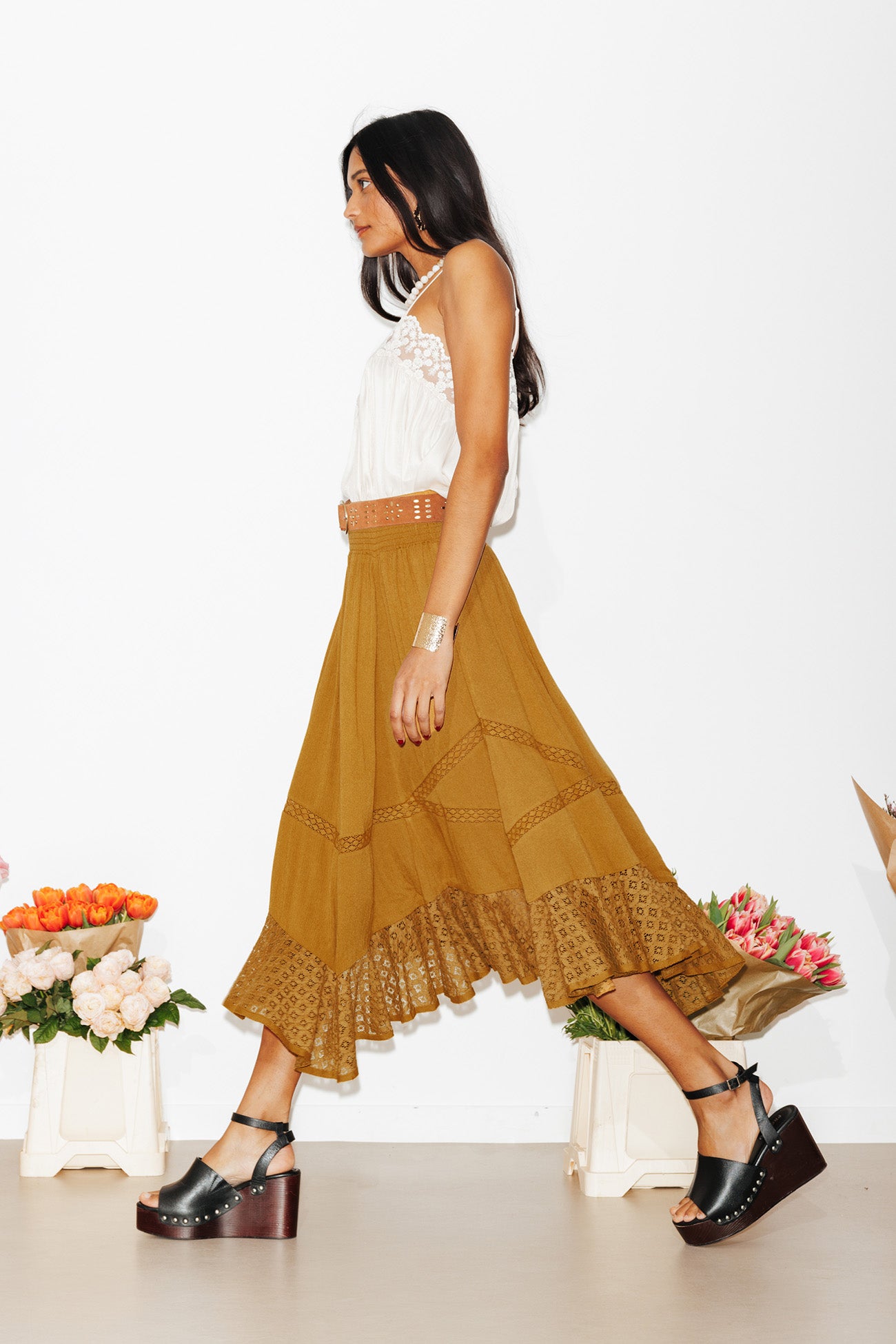 Gonna sottoveste pizzo - Cammello